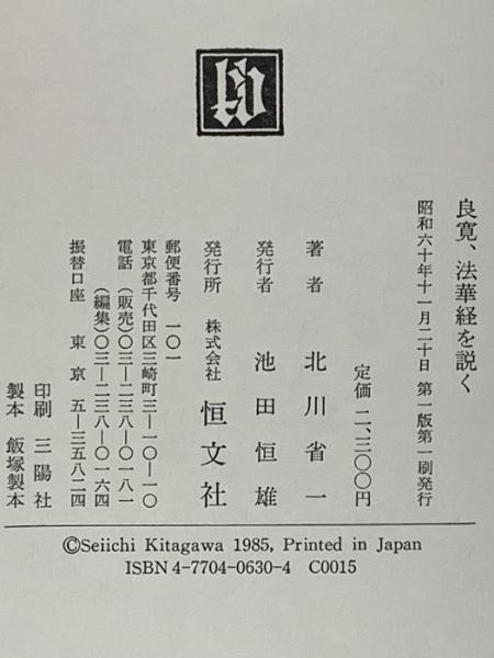 良寛、法華経を説く 恒文社 北川 省一
