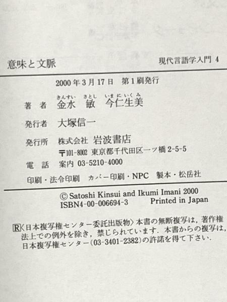 意味と文脈 (現代言語学入門 4) 岩波書店 金水 敏