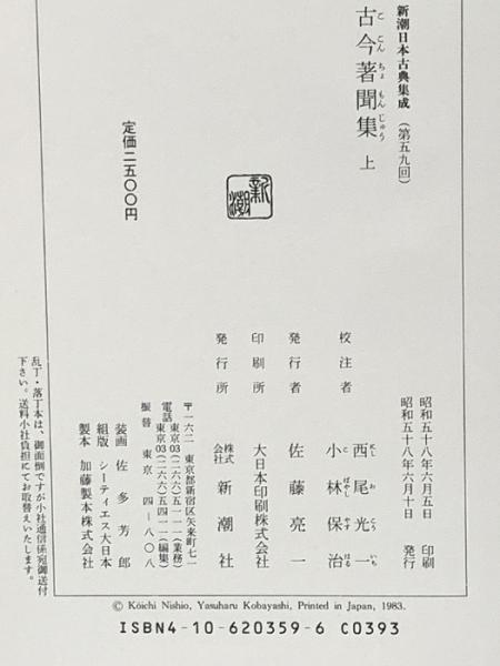 古今著聞集 (上) (新潮日本古典集成) 新潮社 西尾 光一