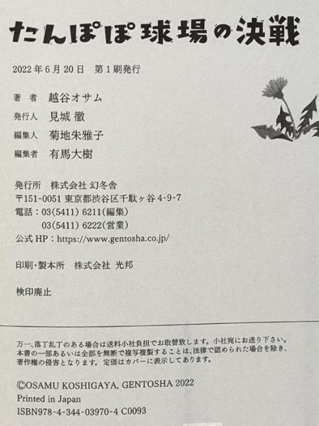 たんぽぽ球場の決戦 幻冬舎 越谷 オサム