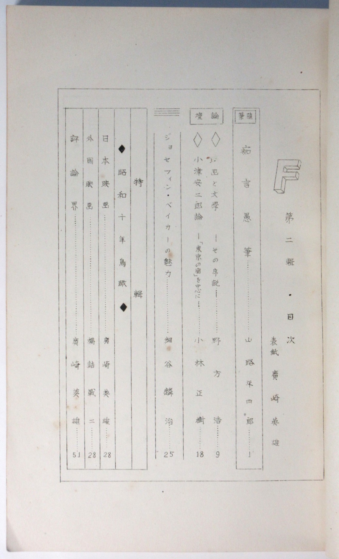 F 第二輯 特輯・昭和十年鳥瞰 第一早高文二F映画研究會機関誌