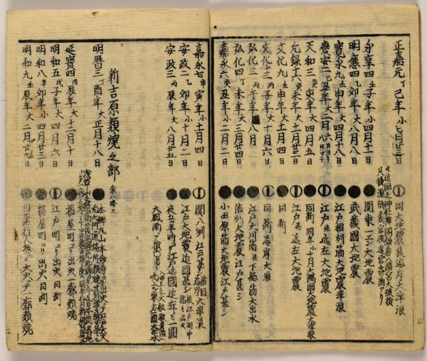 • 解説 〈状態〉良好 藏印 〈内容〉日の吉凶を三分類 江戸芝居町、新吉原、関東一帯の三分類入災害年表 表紙「五百冊限 禁売買」及裏表紙「吉原角町 中万字屋」印押 5丁 小本