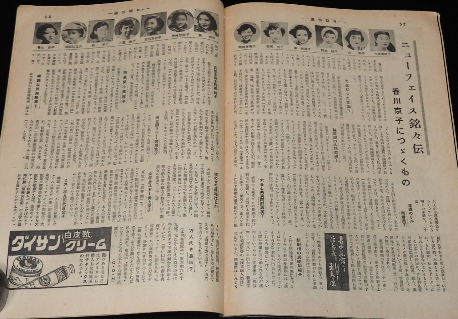 「ニューフェイス銘々伝:香川京子につづくもの/左幸子/若尾文子/紙京子/青山京子/ほか」
