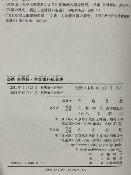 必携 古典籍・古文書料紙事典 八木書店 宍倉佐敏