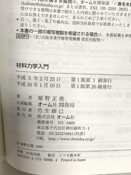 材料力学入門 (機械工学入門シリーズ) オーム社 堀野 正俊