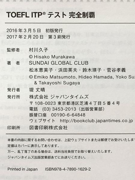 TOEFL ITPテスト完全制覇 ジャパンタイムズ SUNDAI GLOBAL CLUB