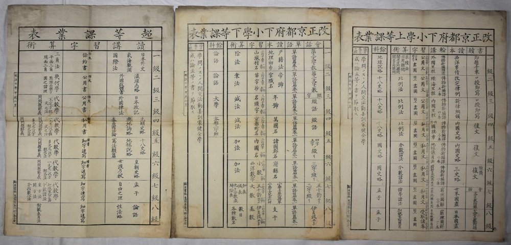 改正京都府下小学上等課業表、改正京都府下小学下等課業表、超等課業表
