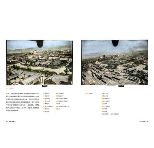 全書依據日治時期「五州三廳」行政區進行分類,搭配考證與地點比對,呈現各地在空襲下的毀損情形與戰時景觀。