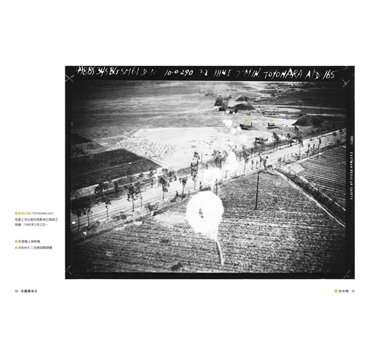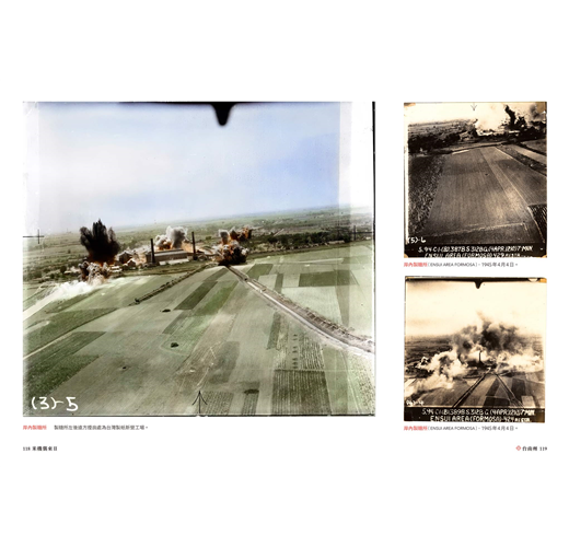 本書為認識台灣二戰與空襲歷史的最佳圖像讀物,照片涵蓋1944至1945年太平洋戰爭期間,由美國軍機搭載攝影設備所拍攝的高空與低空影像相片,忠實記錄日治時期台灣在戰火下的地景樣貌,包含飛行場、港口、學校、軍事設施、街區與民宅等多樣目標。