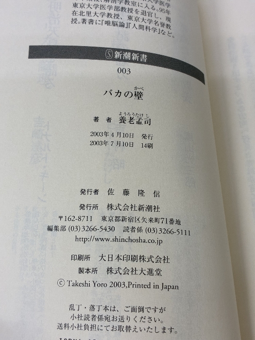 【※イタミ有り】バカの壁 新潮社 養老 孟司