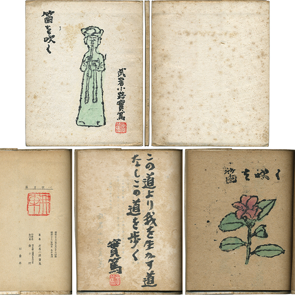 • 解説 孔版詩集 毛筆識語「この道より我を生かす道なしこの道を歩く」署名落款入 表紙・扉絵は手彩入木版画装 仮綴装 表紙シミ 本文ヤケ 非売品