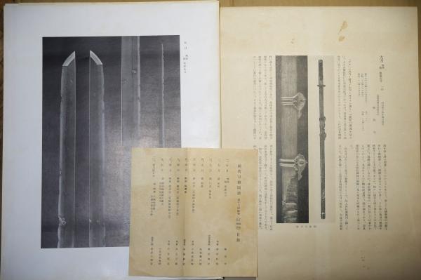 • 解説 10図版・解説付 神タトウ付 タトウ紐欠 送料: ヤマト宅急便80サイズ\935~ 別紙目録入 1.大刀 無銘 拵黒漆大刀 鞍馬寺 1.太刀 銘 正恒 侯爵前田利為 3.銘 □友 傳助友 野田神社 など10点