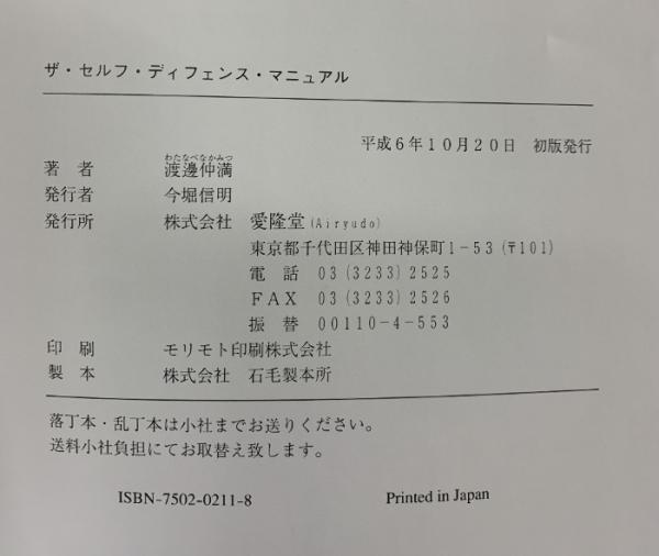 ザ・セルフ・ディフェンス・マニュアル 路上サバイバル戦闘術 愛隆堂 渡邊 仲満