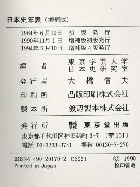 日本史年表 東京堂出版 東京学芸大学日本史研究室