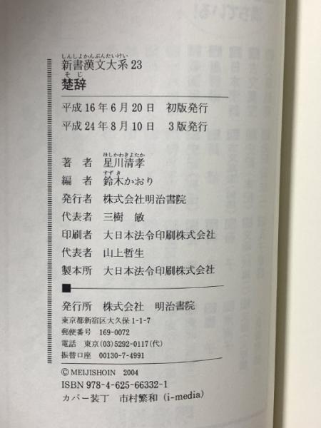 楚辞 (新書漢文大系 23) 明治書院 星川 清孝
