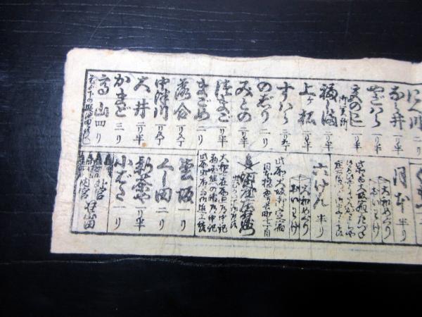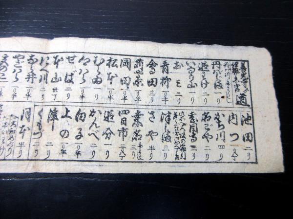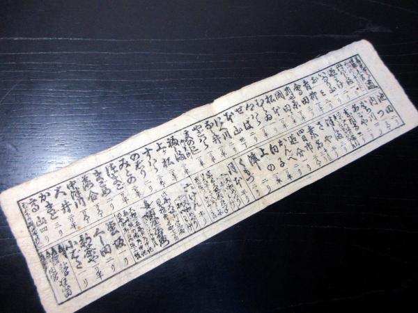 9cm×32cm。木版刷り。シミ、シワ、折れあり。状態は並。