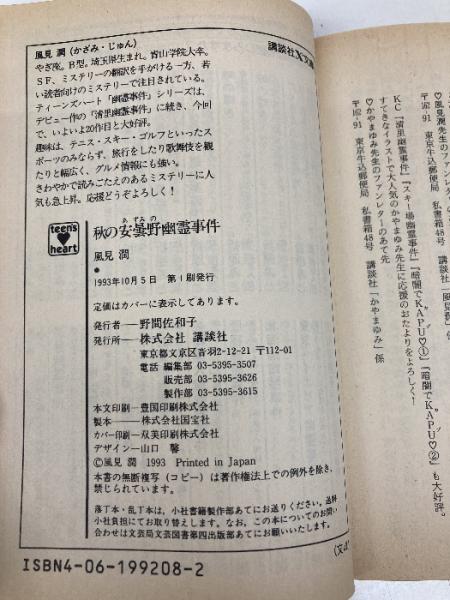秋の安曇野幽霊事件 (講談社X文庫 101-20 ティーンズハート) 講談社 風見 潤