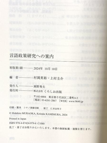 言語政策研究への案内 くろしお出版 村岡 英裕