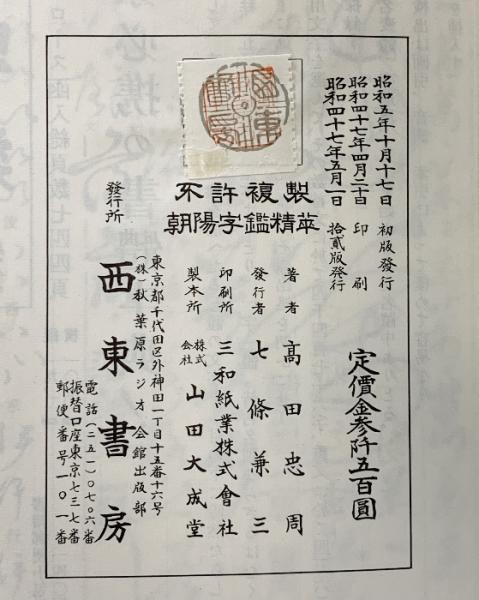 朝陽字鑑精崒 西東書房 高田忠周 昭和47年