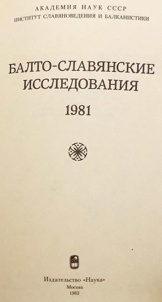 【ロシア語洋書】 バルト・スラヴ語派研究 『Балто-славянские исследования』 1981年版