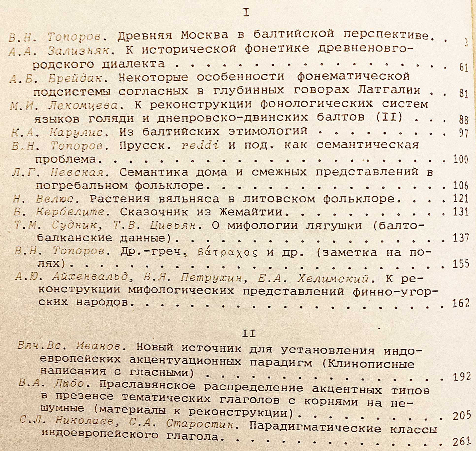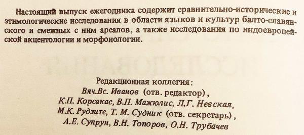 バルト=スラヴ語圏および周辺地域の言語・文化を対象とした比較歴史言語学・語源学研究、さらにインド・ヨーロッパ語アクセント論・形態音韻論の重要論考を収録した、ソ連時代を代表する専門年鑑。