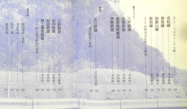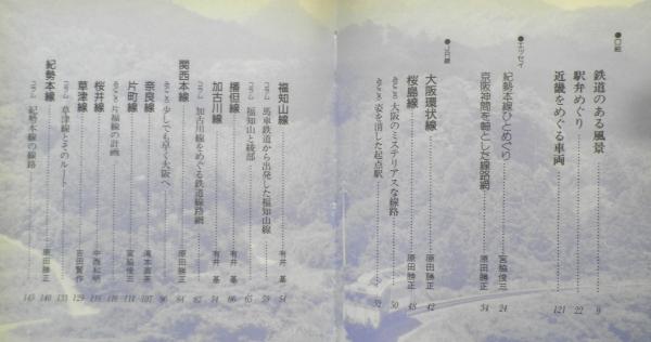 鉄道のある風景 駅弁めぐり 近畿をめぐる車両 JR線/大阪環状線 桜島線 福知山線 播但線 加古川線 関西本線 奈良線 片町線 桜井線 草津線 紀勢本線 名松線 参宮線 和歌山線 阪和線 第3セクター/三木鉄道 北条鉄道 信楽高原鉄道 伊勢鉄道 私鉄/近江鉄道 三岐鉄道 紀州鉄道 有田鉄道 野上電気鉄道 他