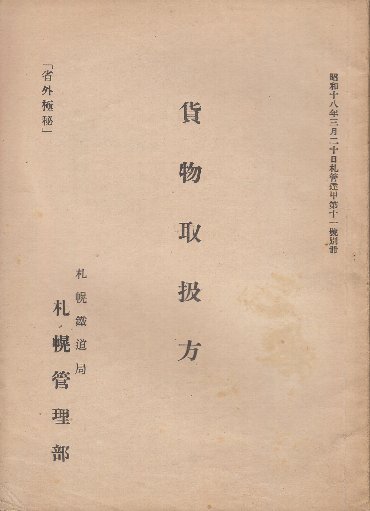 貨物取扱方 省外極秘  (昭和18年3月20日札管達甲第11号別冊)