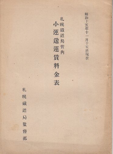 札幌鉄道局管内小運送運賃料金表 昭和15年11月15日現在