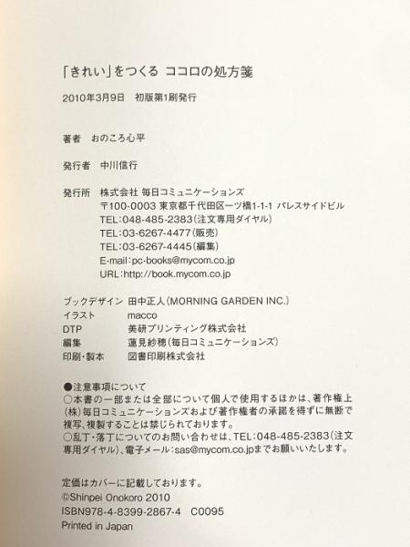 「きれい」をつくる ココロの処方箋 毎日コミュニケーションズ おのころ 心平