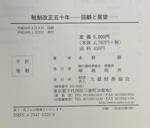 税制改正五十年 回顧と展望 大蔵財務協会 水野 勝