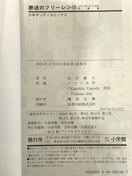 葬送のフリーレン 13 ステッカーセット付き特装版 (少年サンデーコミックス) 小学館 山田 鐘人