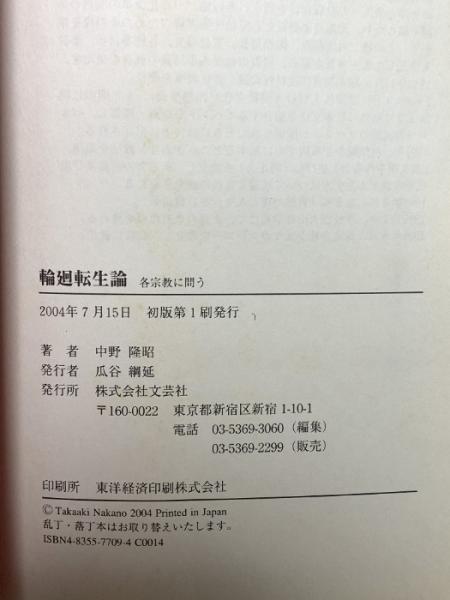 輪廻転生論 各宗教に問う 文芸社 中野 隆昭