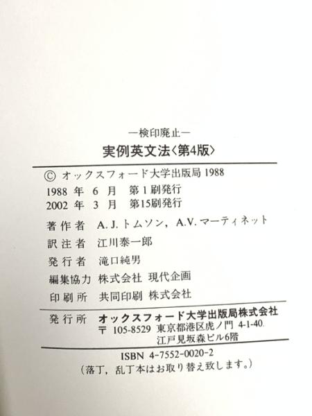 実例英文法 第4版 オックスフォード大学出版局 A.J.トムソン