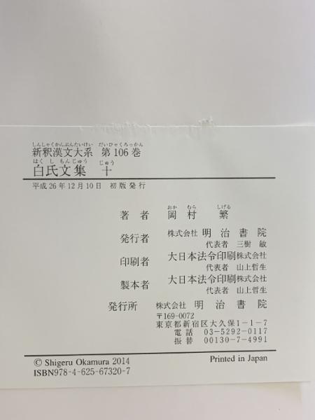 新釈漢文大系 106 白氏文集 十 明治書院 岡村 繁