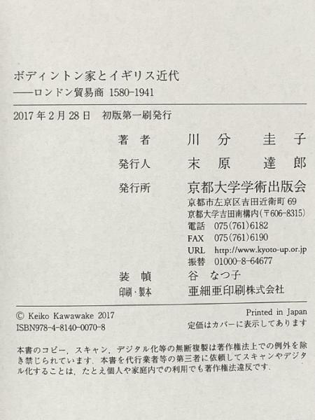 ボディントン家とイギリス近代: ロンドン貿易商 1580-1941 京都大学学術出版会 川分 圭子