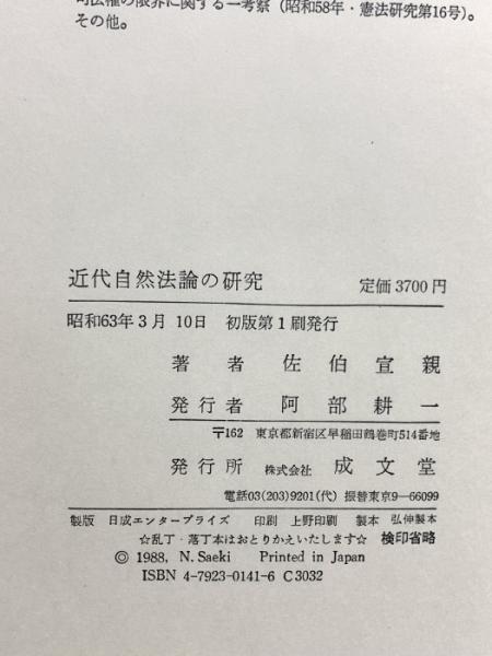 近代自然法論の研究 成文堂 佐伯 宣親