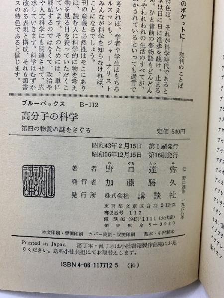 高分子の科学: 第四の物質の謎をさぐる (ブルーバックス 112) 講談社 野口 達彌
