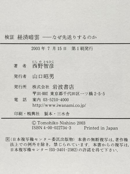 検証 経済暗雲-なぜ先送りするのか 岩波書店 西野 智彦