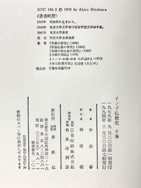 インド仏教史 下巻 春秋社 平川 彰