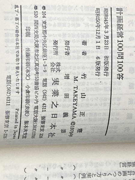 計画経営100問100答―こうすれば企業は成長する (1970年) 実業之日本社 竹山 正憲