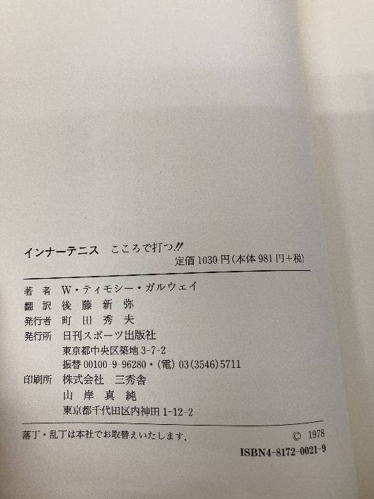 【※イタミ有】インナーテニス: こころで打つ 日刊スポーツPRESS W.ティモシー ガルウェイ