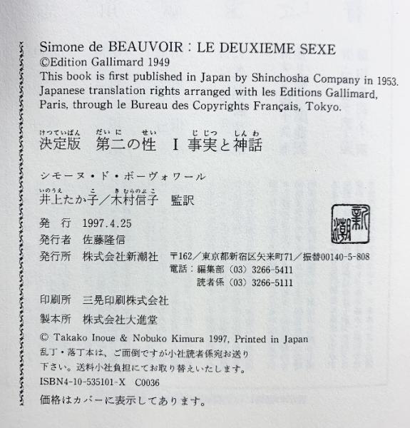 第二の性 1 決定版 新潮社 シモーヌ ド・ボーヴォワール