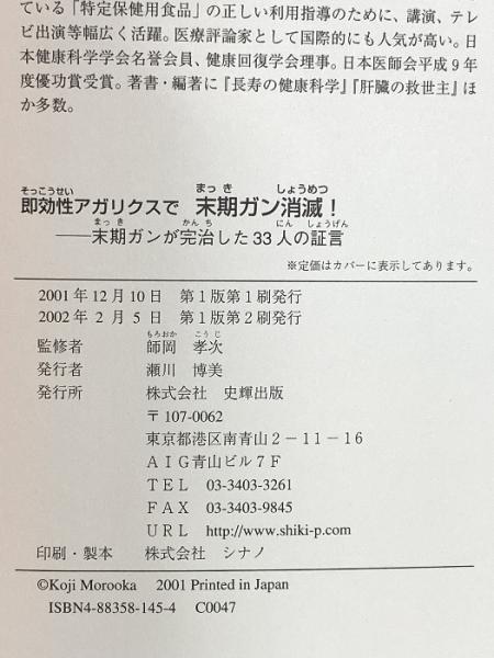 即効性アガリクスで末期ガン消滅!: 末期ガンが完治した33人の証言 史輝出版 師岡孝次