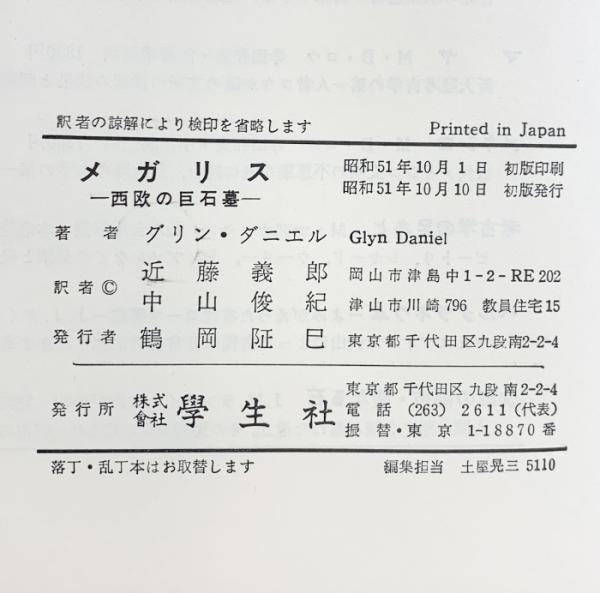 メガリス: 西欧の巨石墓 (世界の考古学シリーズ) 学生社(学生社版) グリン ダニエル