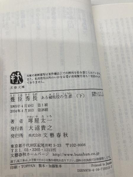 豊臣秀長 下 ある補佐役の生涯 (文春文庫 さ 1-15) 文藝春秋 堺屋 太一