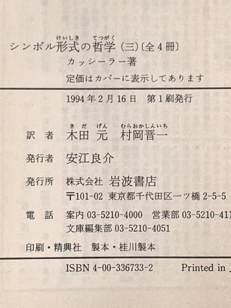シンボル形式の哲学〈3巻〉第三巻 認識の現象学(上) (岩波文庫) 岩波書店 E. カッシーラー