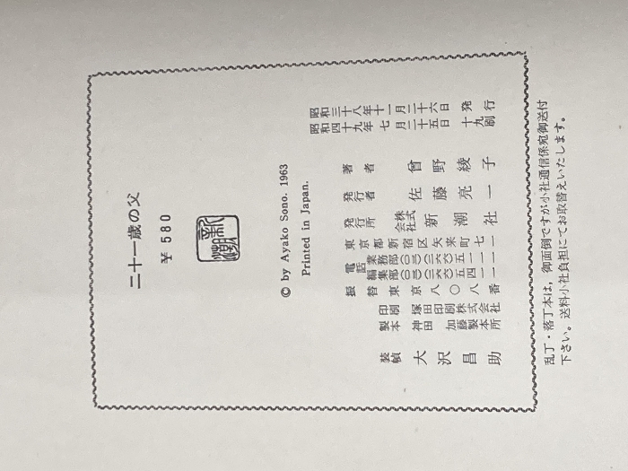 ※イタミ有 二十一歳の父 (1963年) 新潮社 曽野 綾子