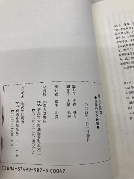 新しい漢方―東洋の知と医療 寺澤捷年先生に聞く 考古堂書店 寺澤 捷年