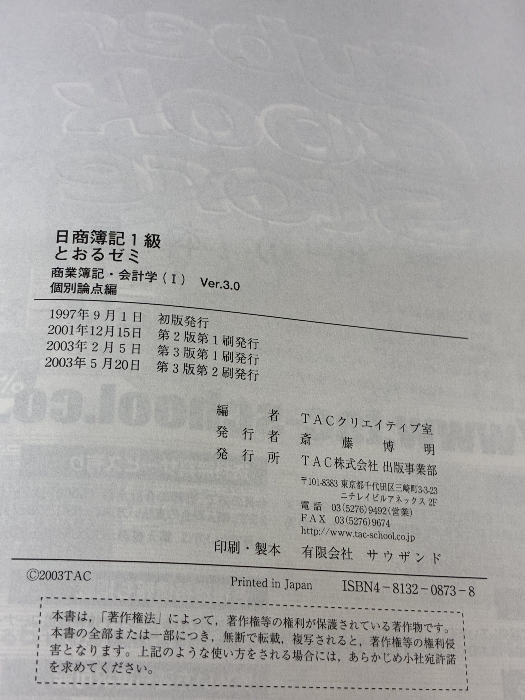 【※イタミ有り】日商簿記1級とおるゼミ商業簿記・会計学 1 第3版 TAC出版 ネットスクール桑原知之