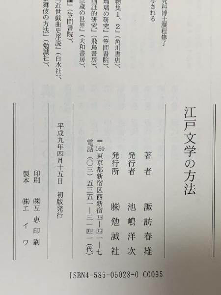 江戸文学の方法 勉誠社(勉誠出版) 諏訪 春雄